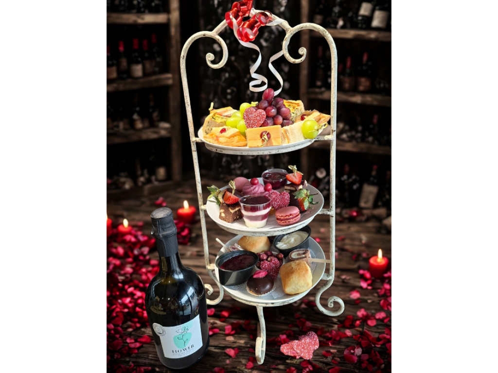 Verras je liefde met onze luxe Valentijns High Wine, geserveerd op een prachtige etagère!